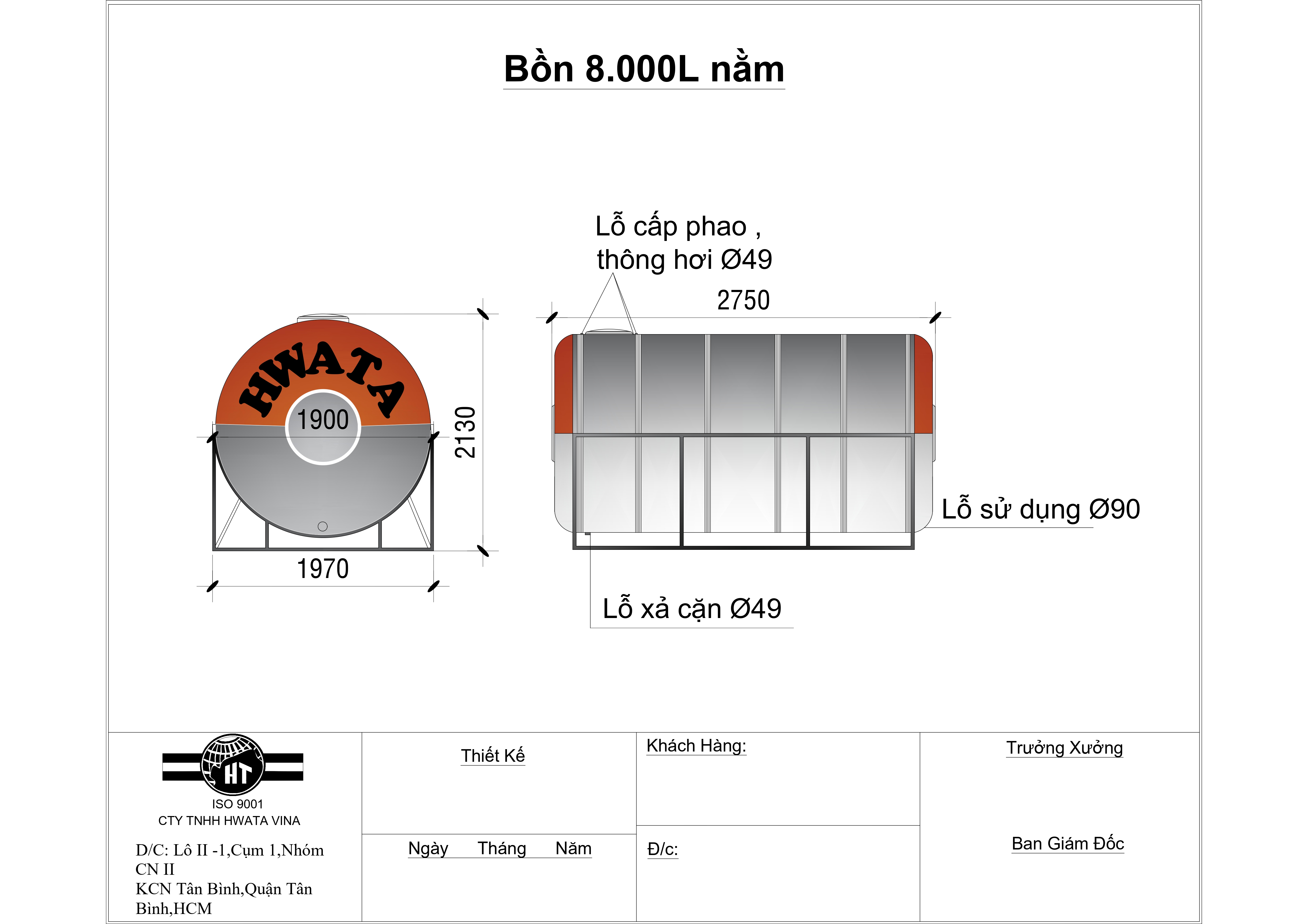 Tiêu chuẩn kỹ thuật của bồn nước inox Hwata 8000L