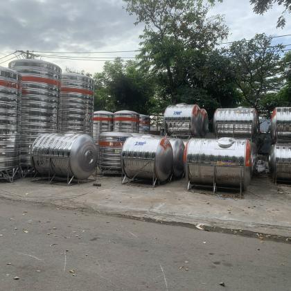 Nhà 4 tầng khá cao nên Quý khách hàng nên sử dụng bồn nước nằm/bồn ngang tốt hơn cả (trong điều kiện có diện tích sân thượng rộng rãi). Bởi bồn ít bị ảnh hưởng bởi gió bão và các bồn inox nằm/ngang luôn dàn đều phần áp lực nên mặt trần, mặt sàn, vững chãi hơn.
